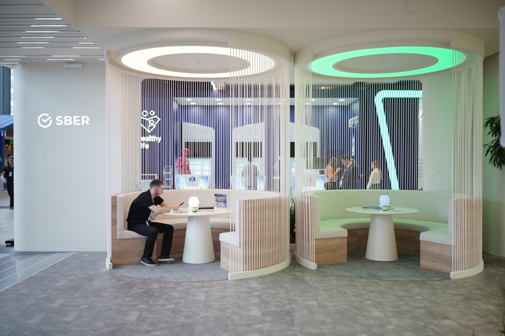 На ПМЭФ-2025 мы создали для Сбера пространство другой тональности — не шумное шоу технологий, а оазис человеческого комфорта.